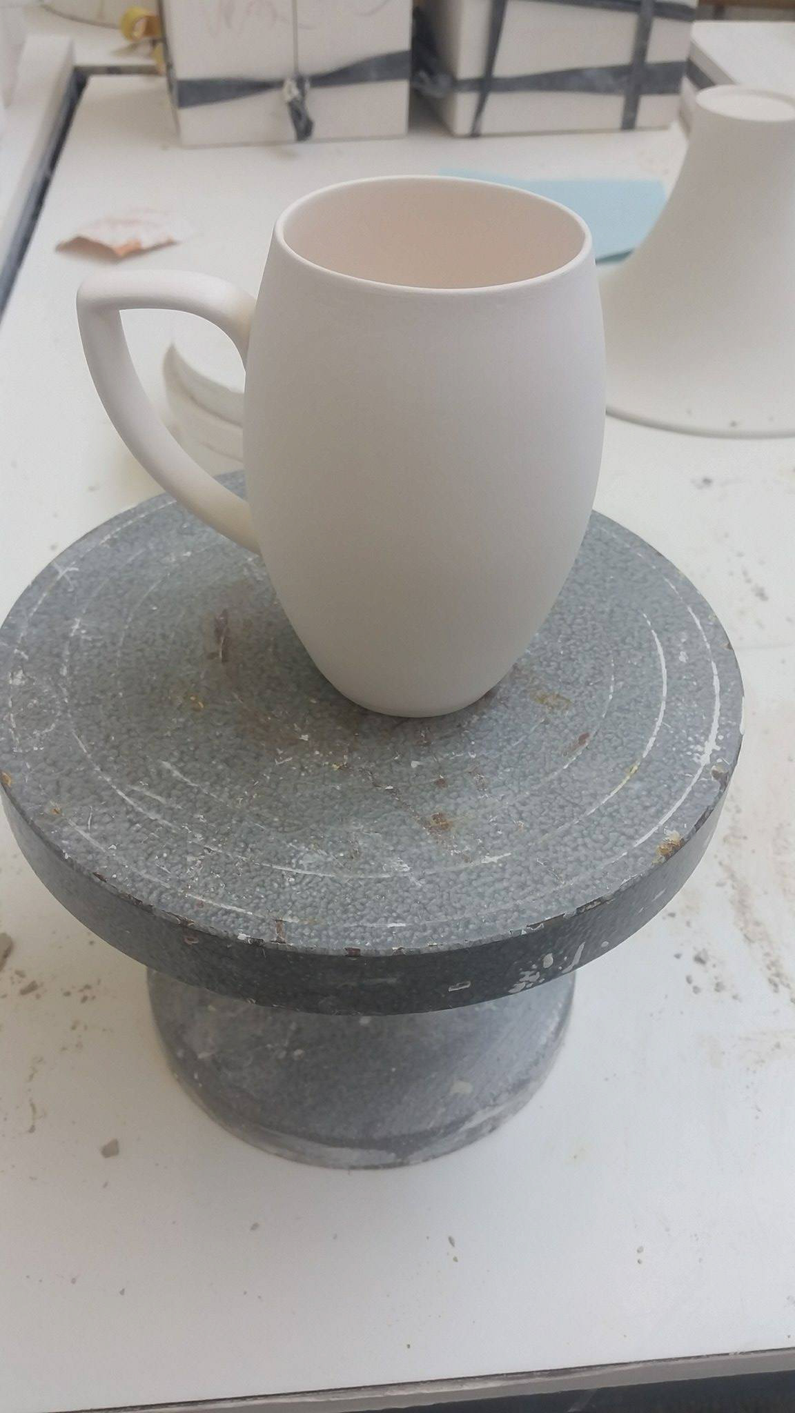 Materials: white plaster (body, negative mold), white porcelain, glaze